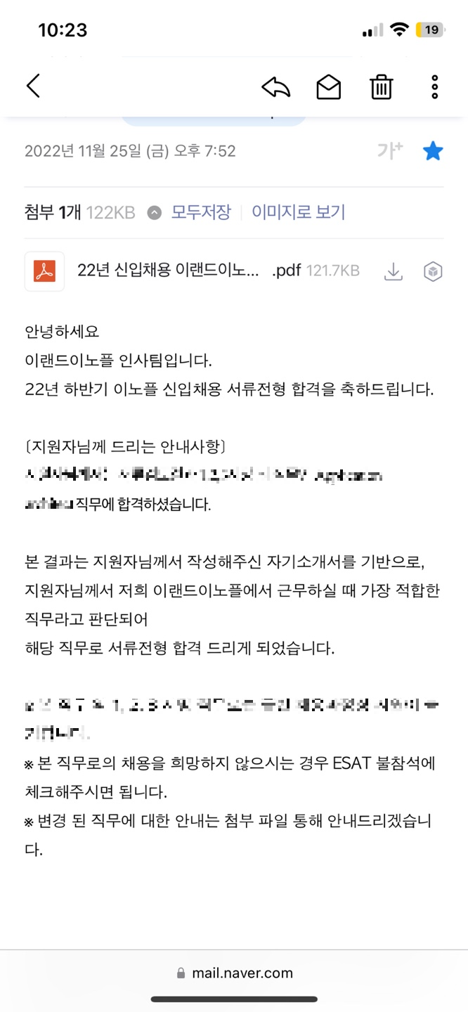 [이랜드이노플] 22년 하반기 신입사원 공개채용(~11/21)에 서류를 넣고 한 3일인가 후에 빠르게 서류 결과가 발표됐다.