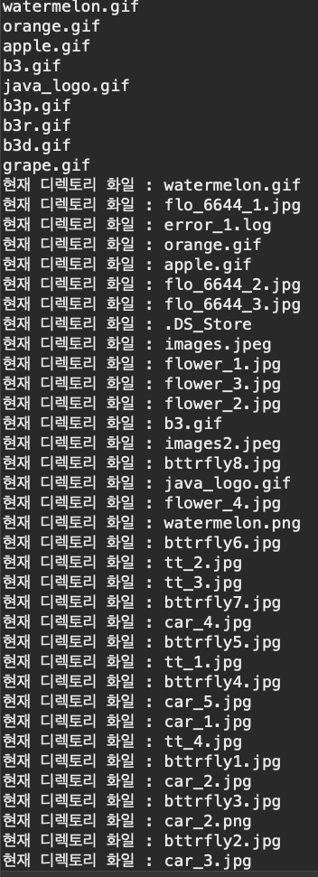 System.out.println("현재 디렉토리 화일 : " + strs[i]);