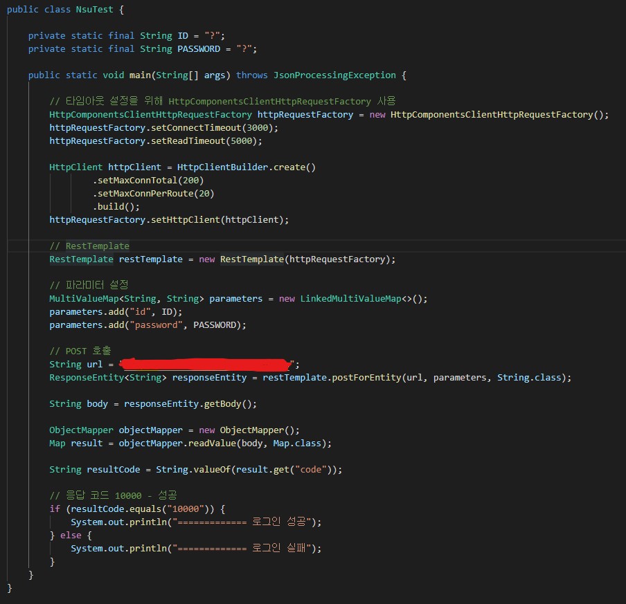 @RequestParam("password") String password, 코드를 통해서 id와 password를 받고 아까 도움 받았던 코드를 통해서