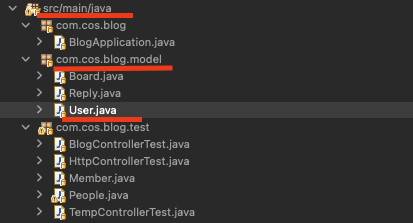 src/main/java에 속해있는 패키지를 하나 생성하고 그 내부에 user.java 파일을 생성해준다.