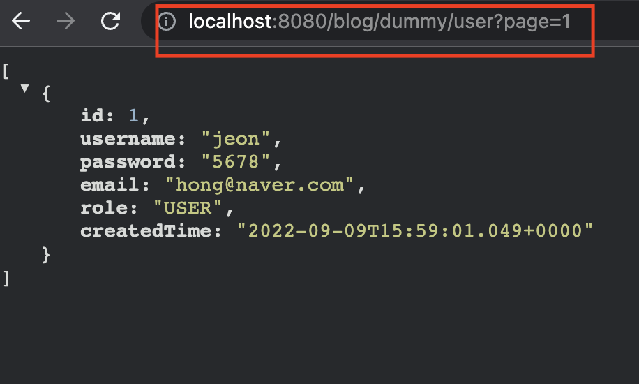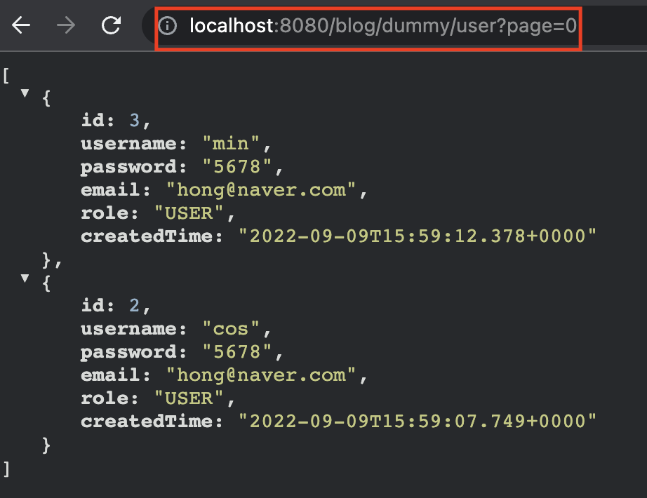 한 페이지당 2건의 데이터를 리턴 받을려고 적용해보겠다.