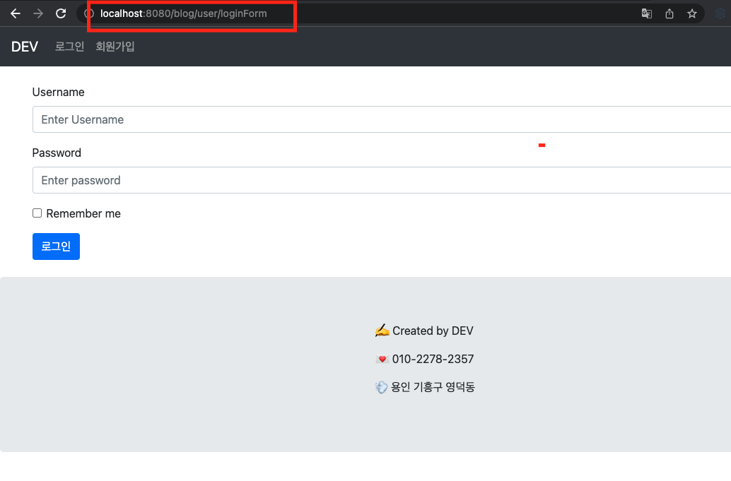 회원가입화면(localhost:8080/blog/user/joinForm)