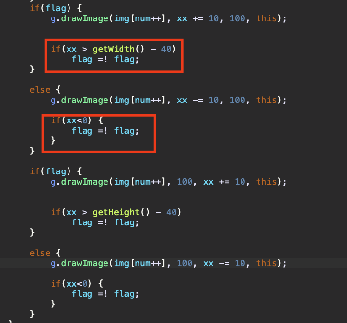 g.drawImage(img[num++], xx -= 10, 100, this);